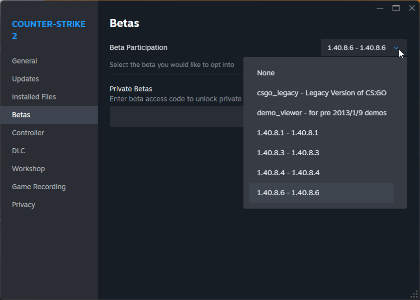 Note: If you wish to play on live servers such as FACEIT, you will need to remove the Beta version from your menu and update the game to the latest version again.